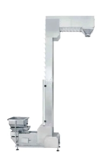 Более сложная задача - когда требуется поднять сыпучий продукт вертикально вверх, не повреждая структуру, в условиях дефицита площади. Здесь лучшим решением является ковшовый Z-образный конвейер. Его конструкция дает возможность строить трассы сложной геометрии, доставляя разные продукты (гранулы, орехи, снеки) в приемный бункер дозатора.